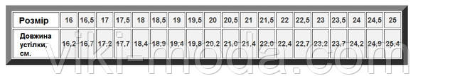Розміри: 16, 16.5, 17, 17.5, 18, 18.5, 19, 19.5, 20, 20.5, 21, 21.5, 22, 22.5, 23, 23.5, 24, 24.5, 25.