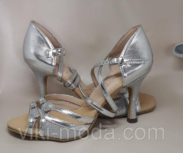Дана модель виконана верх-еко-шкіра Срібло + парча срібло, підкладка-Натуральна шкіра, Устілка-багатошарова супінована, м'яка, підошва-Натуральна шкіра (замша), каблук - 5 см .7 см. 9 см.
